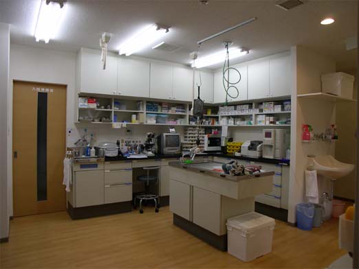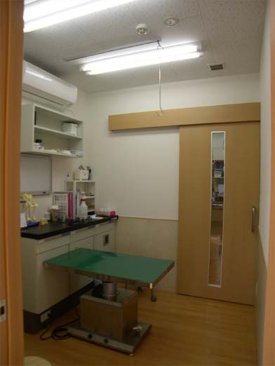 処置室 入院室の様子が見えるように窓を設けた(中央奥)